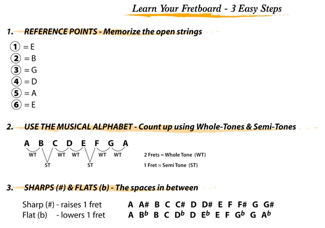 Basic Fretboard Knowledge in 3 Easy Steps. For the full transcription (high resolution pdf),
