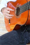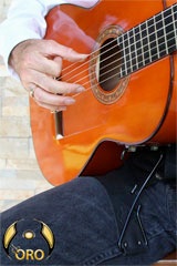 The DE ORO “FlamencoLoco” specialty guitar support.